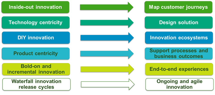 - Innovation and digital transformation are intrinsically linked. The shift from current to future modes of innovation implies deep cultural and operational transformation (see Chart). Most innovation consulting starts off as a digital transform project and evolves into innovation work.